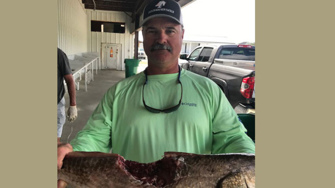 Huge bull drum hauled in by Chase Wainwright while fishing out of Leeville on Aug. 5.
