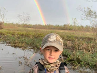 Rohen Biehl, 6, son of Jeremiah Biehl, was pictured under this double rainbow during a duck hunt on Nov. 14 in Chopin, La.