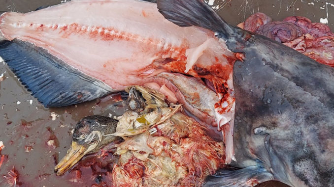 Two catfish eat family of ducks
