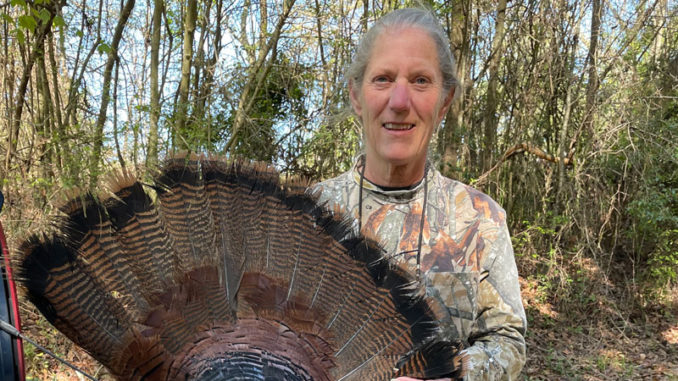 Laura Koch shot her first turkey after her husband called the gobbler in on their property in Mississippi.