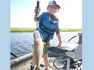 Luke Sages with a bull red he hooked in Dularge on a trip with Capt. Bill Lake.