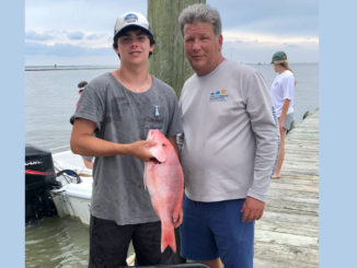 Beau Bergeron caught his first red snapper while fishing with his dad and and his cousin, Capt. Michael Bergeron.