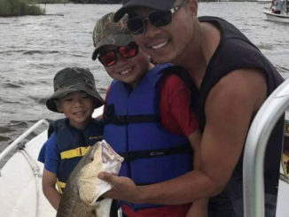Konnor Huynh caught his first bull red, which measured 27 inches, while fishing out of Lafitte with his little brother, Kyle, and his dad, Khanh. The genuine smiles speaks for itself!