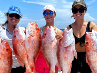 Abbie Bayham, Halie Rivet and Lacy McCarty, Team Grosse Tete South, whacked the snapper out of Cocodrie.
