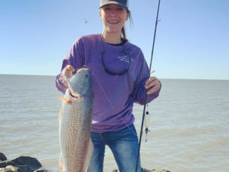 Jennifer Langlinais of Mouton Cove caught this redfish at Cheniere Au Tigre.