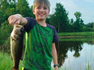 Beaux Dupas with a nice bass caught on his own with a chug bug in a farm pond in Greensburg earlier this year.