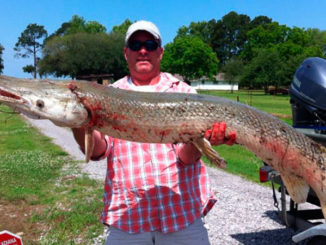 Duane Jeansonne with a garfish caught out of Boston Canal on mullet.