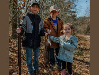 Turner Bowser of Bluff Creek, La., pictured here with his brother Ty and sister Bristol, owners of Hooks and Heritage, harvested his first rabbit on Feb. 5, 2022.