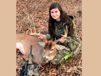 Tori Charrier, 16, with the big buck she took on Jan. 4, 2022 in Tensas Parish. This was her first buck.