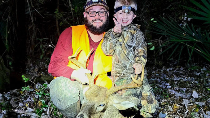 Caleb Blanchard, with nephew Lucas Guillotte, after a successful hunt in St. Mary Parish on Nov. 26, 2022.