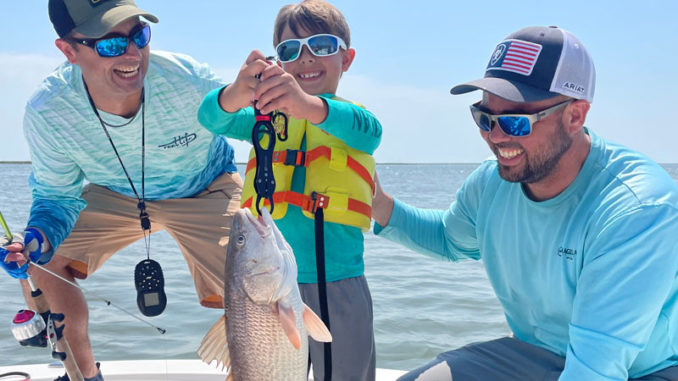Liam Shields, 7, broke his fishing pole catching this 24-inch redfish in Chef Pass.