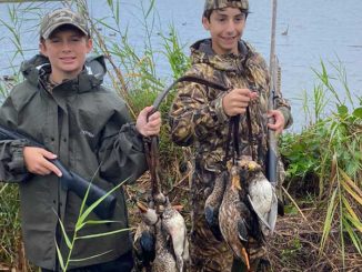 Colt Leger and Jack Cradeur with a limit of ducks during opening day of youth weekend in Calcasieu Parish.