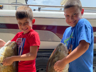 Ethan Howell (left) and Jase Howell caught their first bull reds out of Barataria pass in Grand Isle on Oct. 22, 2022.