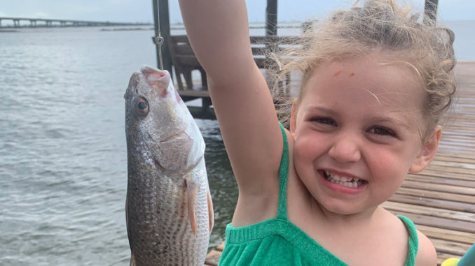 Rylee Frank, 4, caught her first fish (casting and reeling herself) off a pier in Grand Isle. Instagram