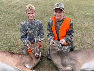 Eight-year-old Levi Thomas with his first deer and 11-year-old Tucker Thomas with his second deer taken on Nov. 21 in Winn Parish.[…]