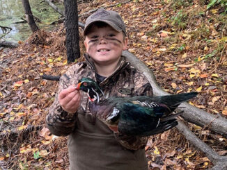 John Henry Erwin, 8, got his first wood duck in Madison Parish.