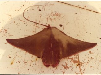 At least that is what some shrimpers say they hear. The animal that they have nicknamed “choo-choo” for the whoofing sound that it makes after it hits the deck of a shrimp boat is known by scientists as a cownose ray, Rhinoptera bonasus. […]