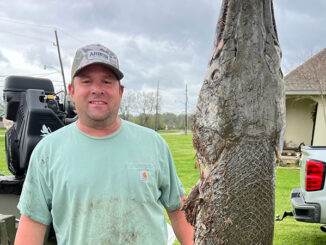 Wayne Miller caught this alligator gar in Bayou Bourbeaux. It weighed 115 pounds and measured 6’9” long.