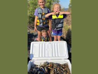 Jillian, Jolee, and Jemma Riera with a limit of crabs from Pointe au Chien WMA.