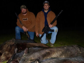 This photo is from an evening hunt with outfitter Southern Eradicators, located near Crowley, La. The group was checking rice fields and crawfish ponds when they capitalized on a big group of hogs up to[…]