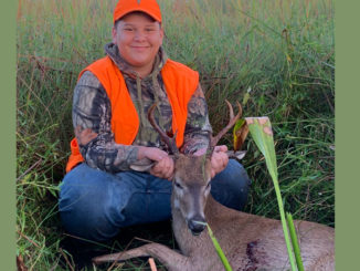 A proud moment for Langston Thomas after taking this buck on Youth Day while hunting in the St. Mary Parish marsh.