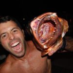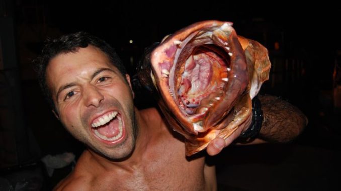 This brute is named Lutjanus cyanopterus by scientists. Lutjanus comes from “ikan lutjan,” the name of a Malaysian fish in the local official national language Malay. The word cyanopterus means “blue fin” in Latin, even though the fish does not have blue fins.