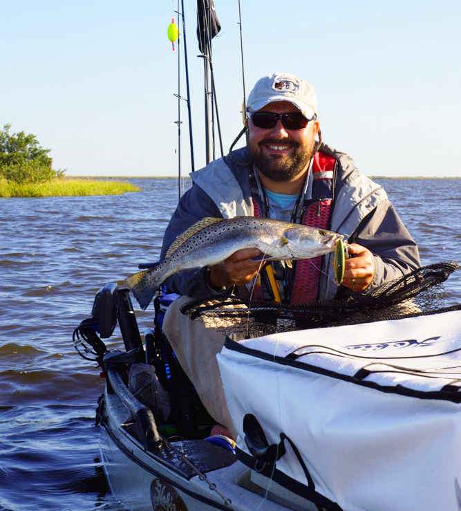 Fall is finally here. The trout are on the move back into the marsh, and that’s great news for kayakers. The shorter days are coupled with shorter paddles, there’ no need for live bait and great catches of speckled trout await. Oh, and did I mention the pleasant weather?