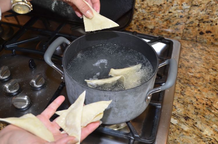 Tip: Don’t overcrowd the pot while boiling the stuffed wonton wraps , because they might stick together.