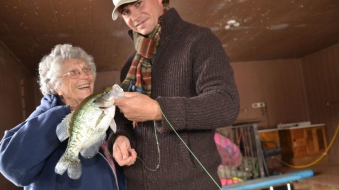 The big white perch filled the third bucket. “I guess we better quit and get something to eat,” she lamented.
