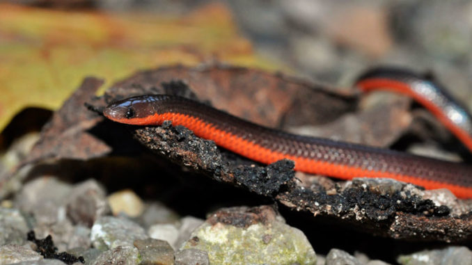 These snakes are typically solid grey or black, with a yellow-orange belly with small black spots, usually in pairs. They have a thin white or yellow band around the neck, giving the species its name. Due to their small size, they mostly feed on earthworms and smaller insects, salamanders and lizards. Most of their life is spent under logs, tree bark and other cover objects, so they’re rarely found on the surface. They prefer to live in bottomland forests but can be found in upland pine forests. Ring-necked snakes get to be 8 to 12 inches long. The maximum length known is around 18 inches. They occur in the eastern and central parts of Louisiana but aren’t found in the southwest region of the state. Although this species is mildly venomous, it is considered harmless because its venom is medically insignificant to humans.