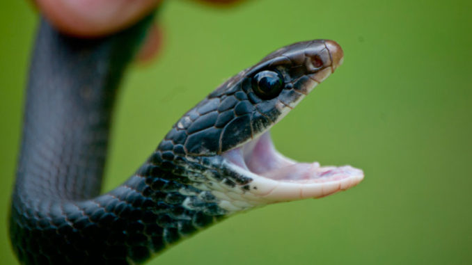 These account for two of the 48 species in Louisiana and can be found across the entire state. The specific type of rat snake depends on their location in relation to the Mississippi river. Westerns are found West of the river, and East of the river you will find greys. Rat snakes are long and slender. They vary in color from nearly black without much of a visible pattern to pale brown, yellowish, or even orangeish with black or brown blotches. Averaging around 4 to 6 feet long with a record of 7-feet-2, these snakes can climb virtually anything including walls, poles and trees. They’re often called “chicken snakes” because they spend time around chicken coops eating mice and rats that are stealing the feed, but they’ll also eat eggs when the opportunity arises. These constrictors also eat birds and other rodents. Adults can annually consume more than 100 disease-carrying rodents, which also includes the thousands of fleas and ticks in which they are covered. Rat snakes will often display a “kinked” appearance and will coil up in a defensive posture when cornered, but they pose no danger to humans.
