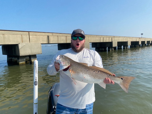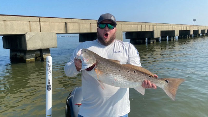 Chris Tubbe was out fishing with his friend, John Flowers, on Aug. 7, 2021. They launched in Bayou Lacombe and fished their way to the mouth. They made the run to the Hwy. 11 Bridge and the Trestles. When they got there, Tubbe tied on a 3/8 -ounce jig head with a Salt strong Slam Shady jig, tossed it towards the Trestles and the fight was on. It took about a minute before he got to where he could see the fish, and he said it took what felt like a hour to land him. This was the first redfish he’s ever caught, but he said it definitely won’t be the last.