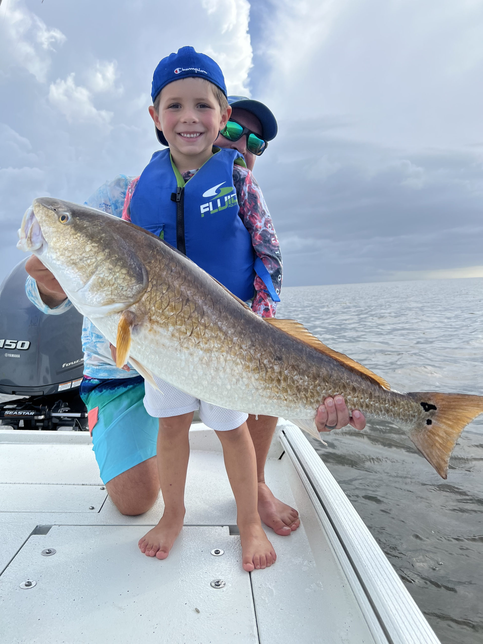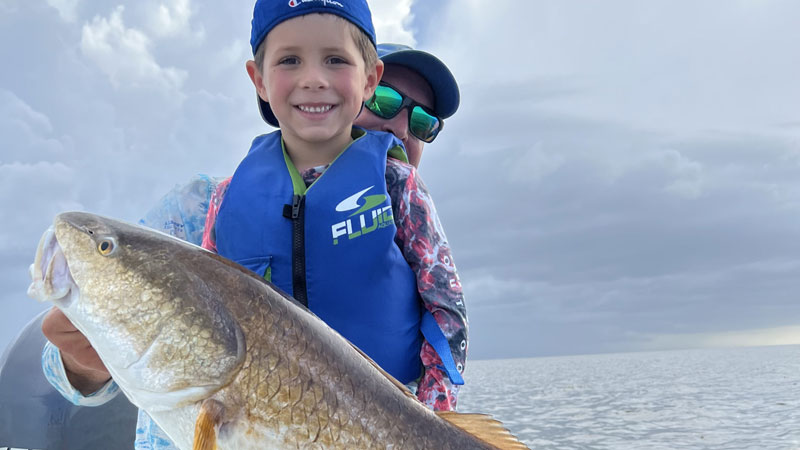 Aiden Breaux, 6, caught this 24-pound bull red on the east side of Leeville in mid-July on live shrimp while fishing with his dad, little brother, and Paw Ernie.