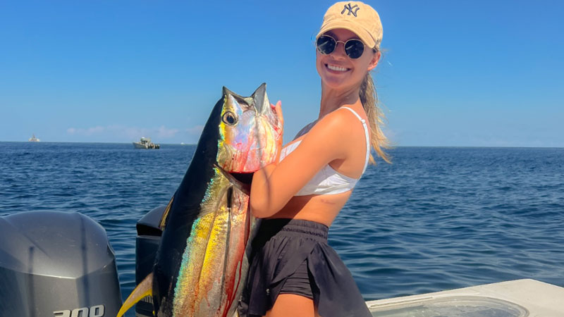 Bailey Trosclair with a yellowfin tuna caught off the coast of Venice on Sept. 10, 2022. She said she’s extremely grateful for growing up in such close proximity to some of the best fishing in the world.