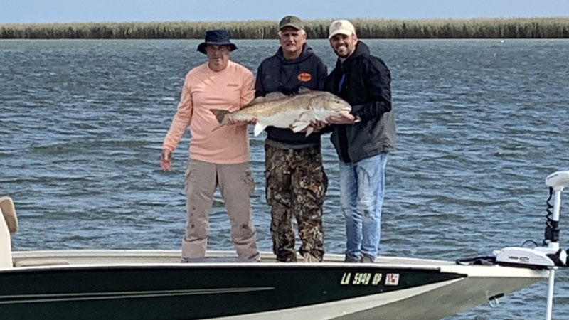 We were fishing down river in Venice when I hooked what I originally thought was a nice trout but quickly realized I had hooked into a large red. Thirty minutes later we landed the largest redfish I had ever caught, then quickly took a few pics and released it to fight again. After that we finished out our limit of trout and headed back to the camp. Great time fishing with friends and family.