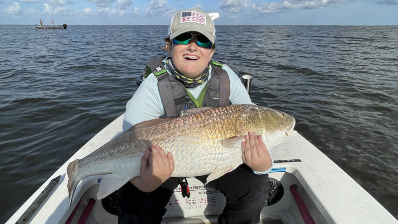 Dayton Jackson caught this 36-inch bull red on a popping cork and No. 1 Owner Circle hook while fishing for trout in Lake Chien on May 29.