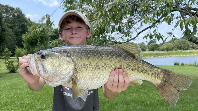 Eli Malley, 10, caught this nice largemouth bass on a July afternoon in his backyard in West Feliciana Parish. He was using a bream he also caught as bait.
