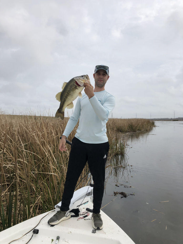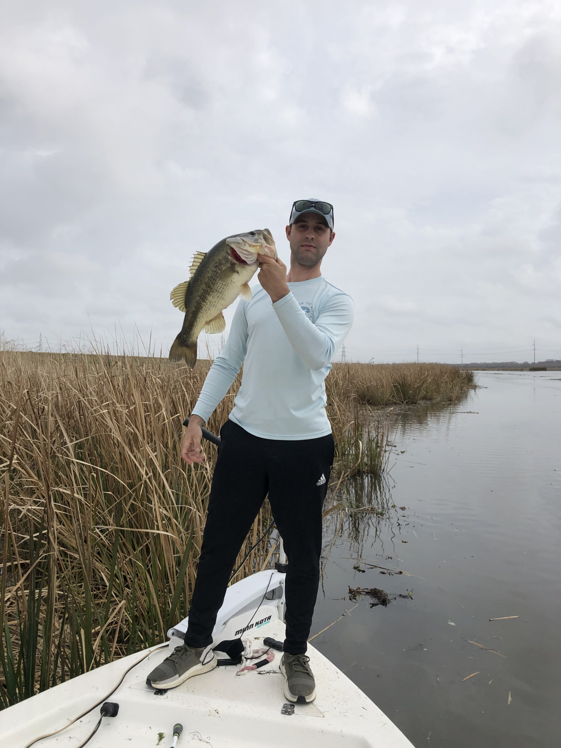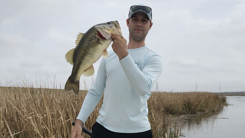 Matthew Feigler spent an early foggy morning on Feb. 28 fishing with his dad on Bayou Segnette. There was muddy water all around and they only had one small bass in the boat. On the way in they decided to try one more spot. Right along the bank this beautiful and hungry 6-pound, 3-ounce lunker nailed a Spro Bronzeye Frog!