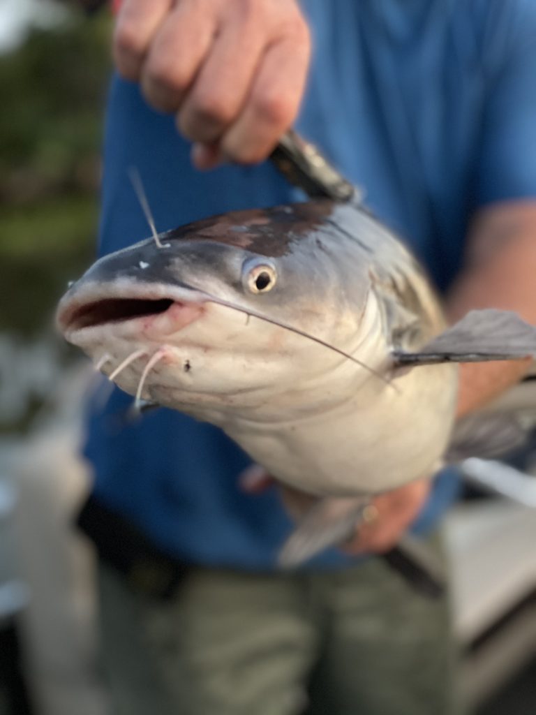 Every now and then when the moon is right and the weather is great we we head out in in the evening to go jug line fishing for catfish. Using a pork but marinated in Italian dressing for bait, and if you don’t use it all you can take it home and eat it yourself. Here is a photo pf the standard sizes catfish we catch.