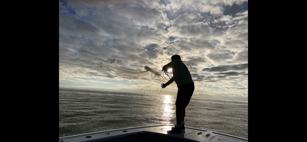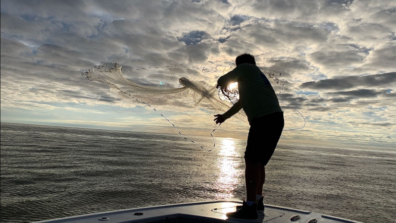 Avid outdoorsman Paul Blomkalns throwing for pogies before a tuna run out of Cocodrie. Blomkalns regularly throws a large party at his Mandeville home after a successful hunting or fishing trip. The much anticipated invite always comes with the tag line, “It’s gonna be a celebration.”