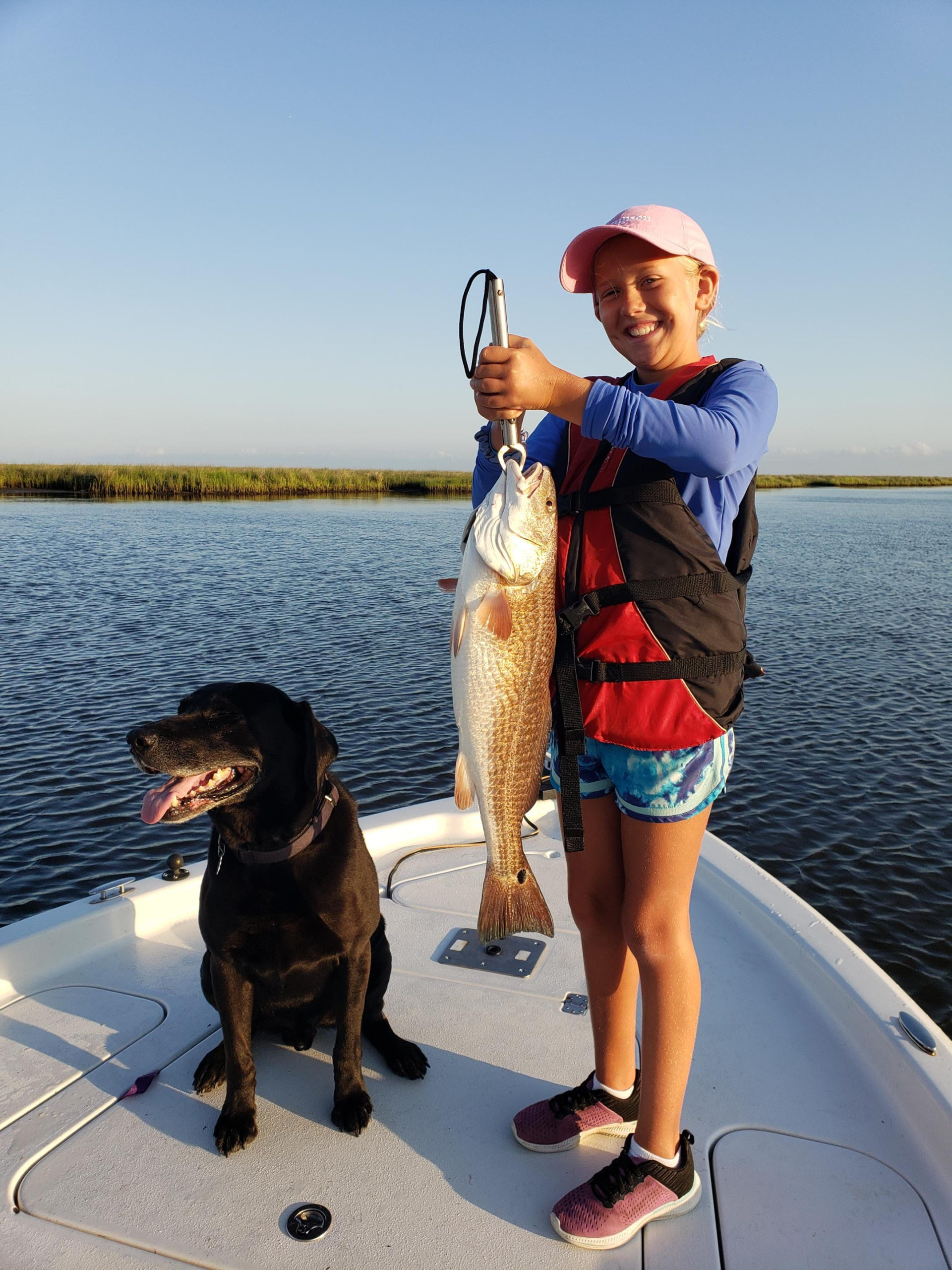On June 12, Krieger Alcon, 11, caught her first redfish out of Hopedale with her friend Gator. Also on board were Capt. Lee, her dad, Chip, and her Pop Pop, Clyde.