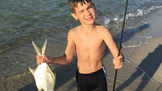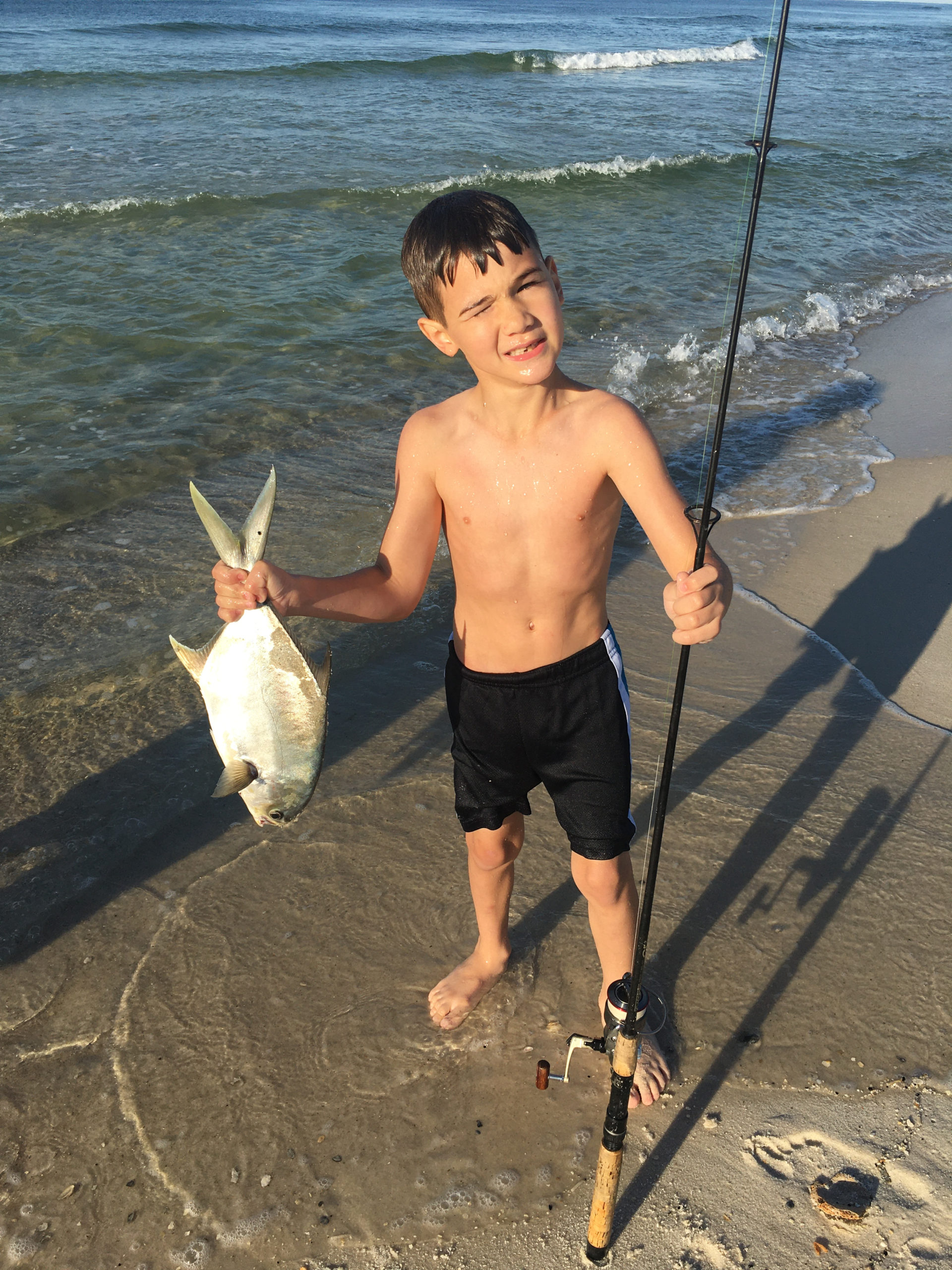 Eight-year-old Liam Perez of St. Bernard caught his first pompano on Perdido Key Beach, Fla. He was on a family vacation with his parents, uncles, aunts, cousins, grandparents and great grandparents in the first week of May. He caught the only pompano of the trip, on his second cast of the first morning.