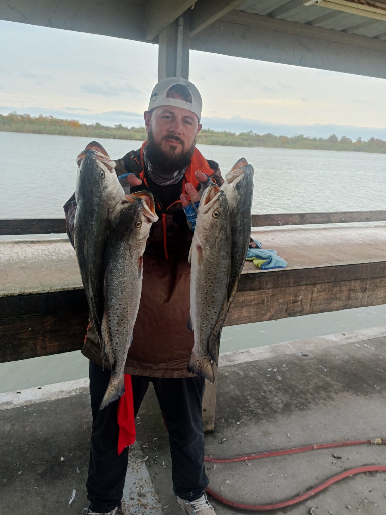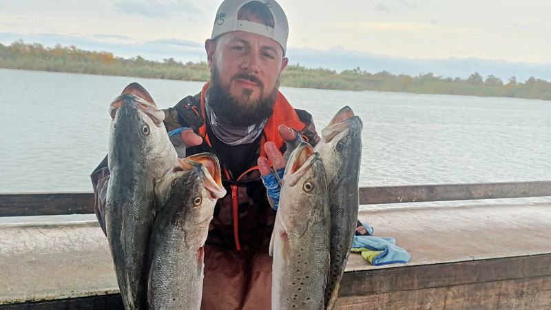 Low Mississippi River levels and cooler temps had the big trout aggressively thumping Chris Bell’s bait on a slow retrieve. He was fishing in Venice on Nov. 25, 2022.