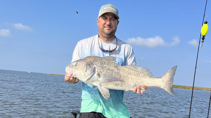 Derek Stelly caught this 36-inch black drum in Wilkinson Canal near the mouth of Barataria Bay on Aug. 26. The fish fell for a VooDoo shrimp under a Four Horsemen popping cork.
