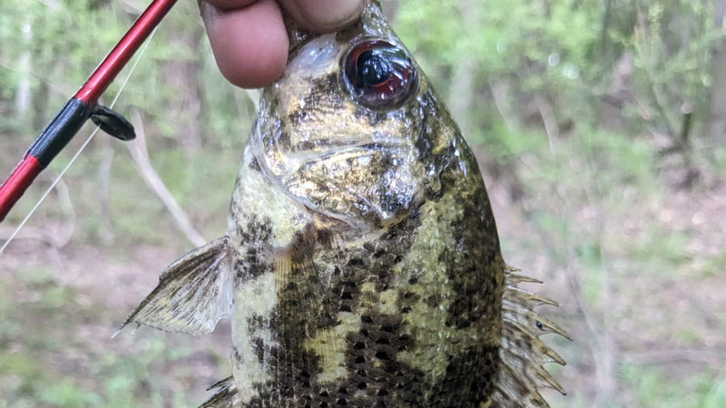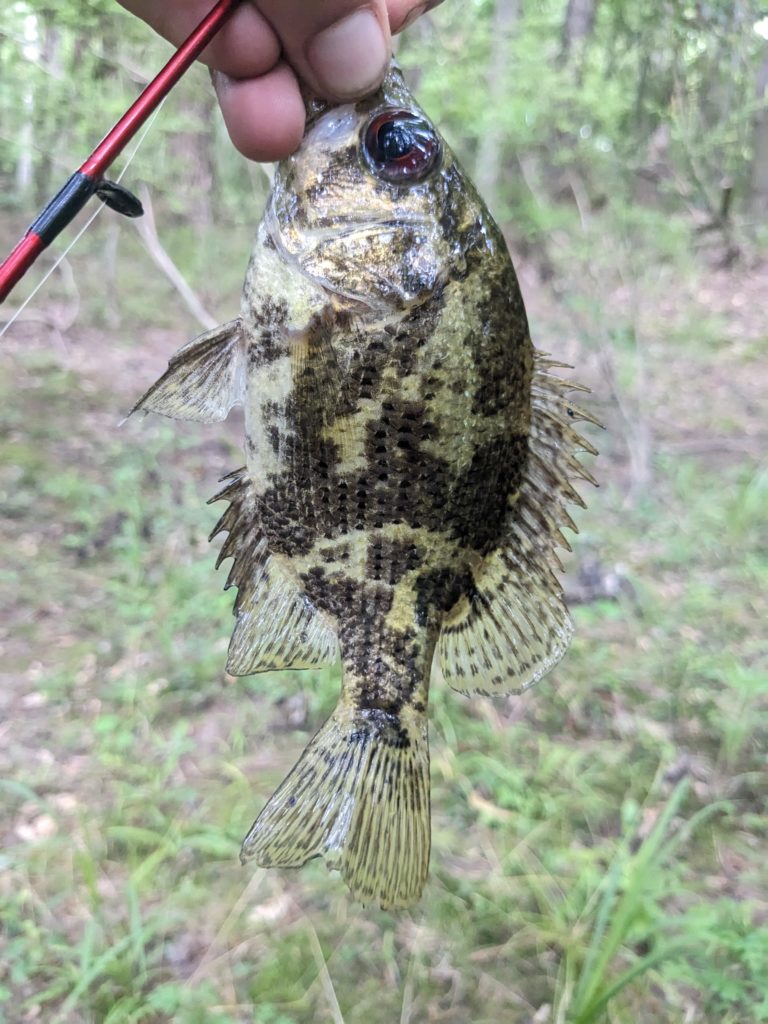 Been trying to catch a shadow bass for a while now, was fishing along Bonner Creek in Bogue Chitto State Park with a beetle spinner and got this one alongside a submerged log.
