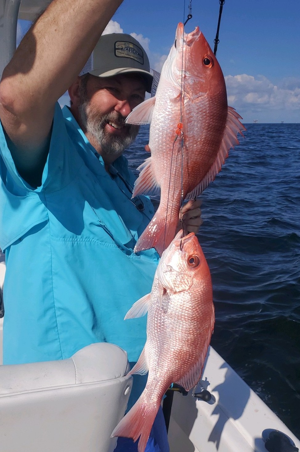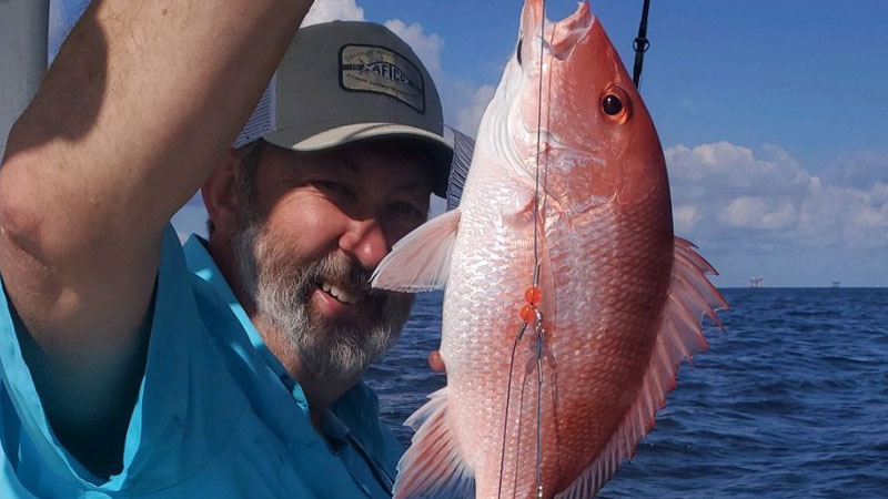 Russell Abney, 63, of Kenner on his first ever offshore fishing trip. He was fishing the rigs the opening weekend of the red snapper season about 15 miles off the coast of Grand Isle.