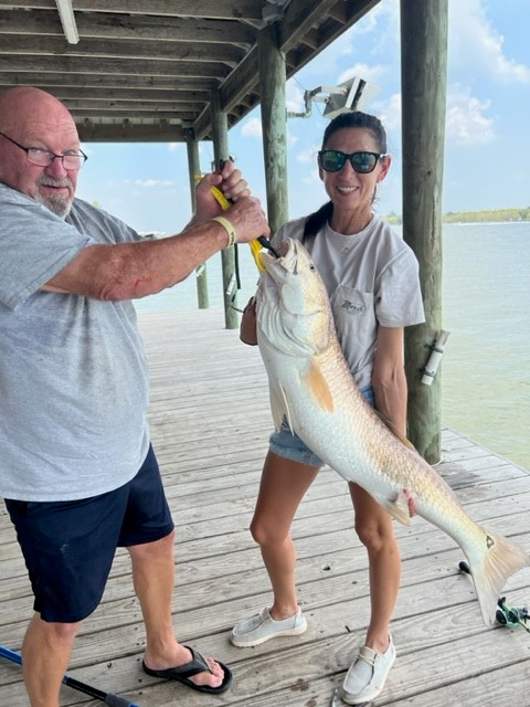 Our 2023 annual family fishing trip in Hackberry, La., was definitely one to remember!!! I was a little disappointed when a back injury left me sitting on the dock. Mom, Dad and I sat on the dock enjoying each other’s company while we waited on the boats to return so we could admire our family and friend’s catches of the day. I decided to fish while we waited, and this 44-inch, 25-pound monster redfish decided to liven up our day. I reeled him in…. Mom and Dad didn’t disappoint…. Laying on the docks edge, they took the two nets they had…. One took the head and the other took the tail. Pulled this bad boy up and the CELEBRATION began!!! What a weekend of laughs, lots of pictures and stories for a lifetime.