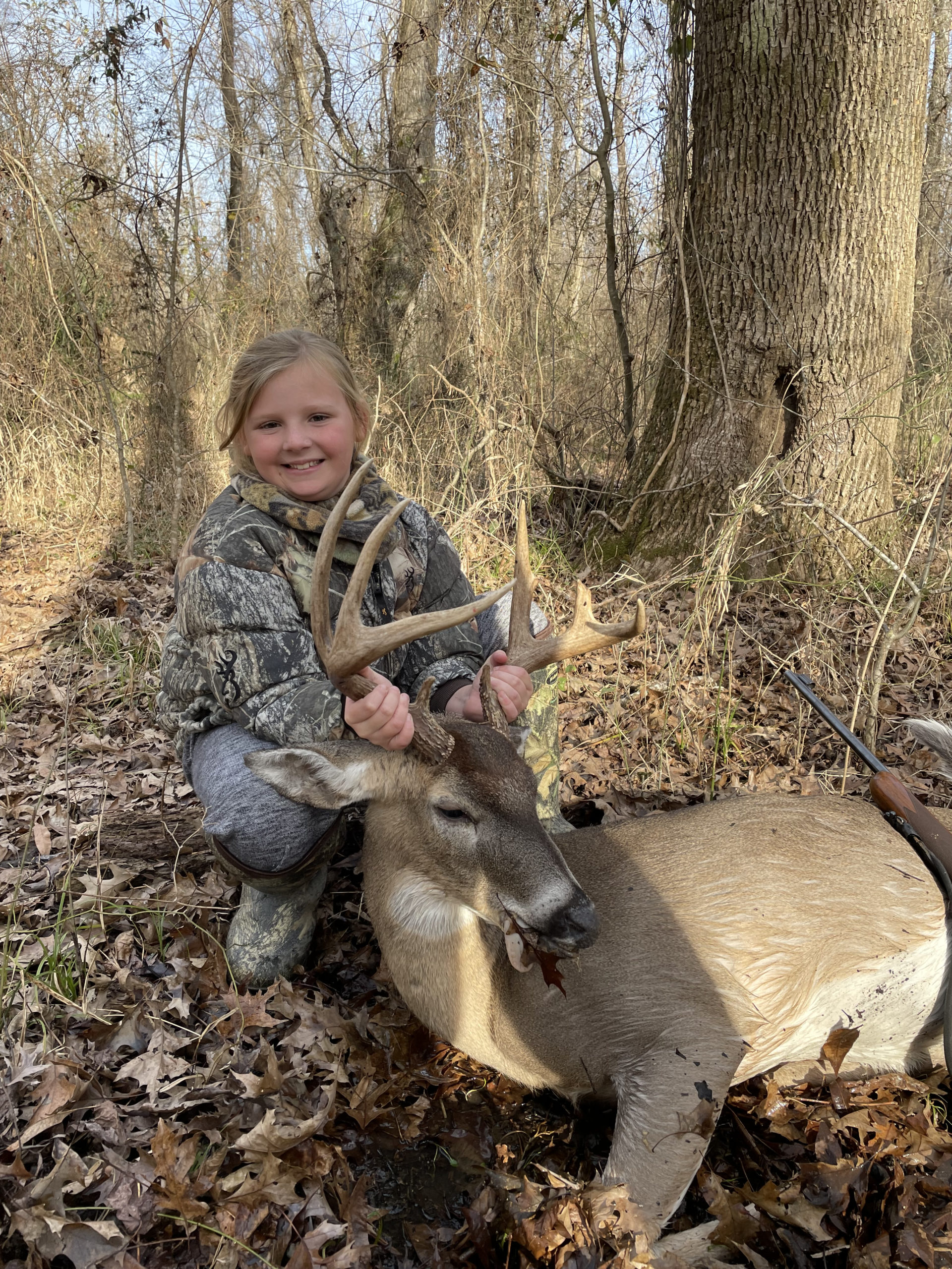 Allie Bonneval of Raceland killed her first buck in Tensas Parish while hunting with her dad on a sunny day in mid-January. Allie used a .243 to deliver the perfect shot at about 50 yards. You can see the joy on her face.