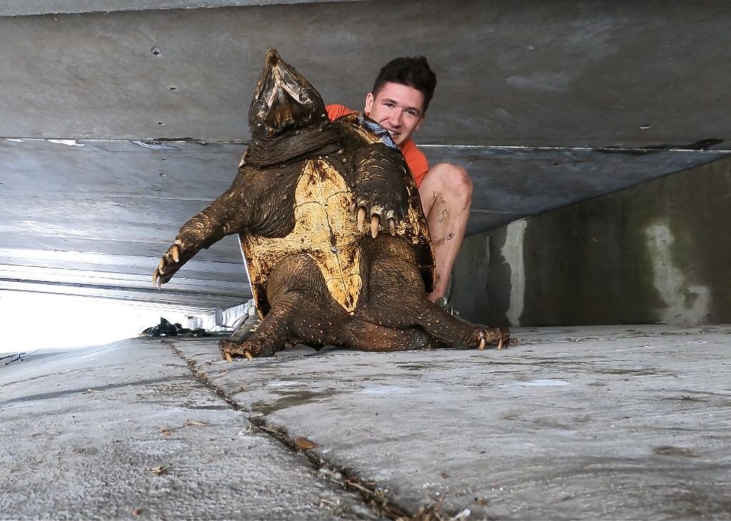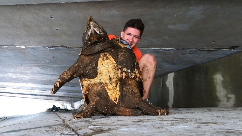 Robby Scott accidentally caught this super old alligator snapper while gar fishing. It was caught on a 1/0 live bait hook so the turtle swam off strong without harm. Scott hopes it will breed and help restore their declining population.