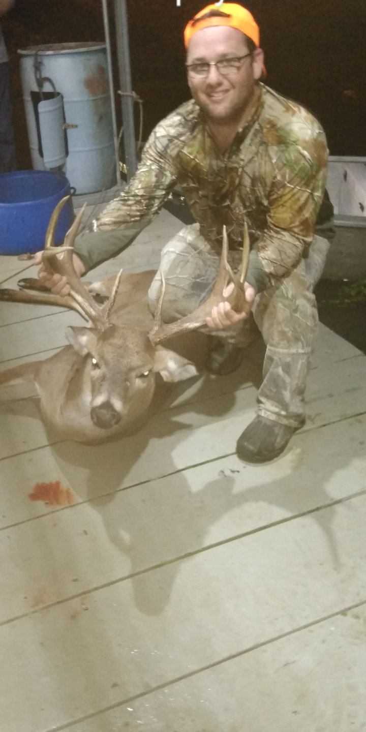 So the chase for this buck started in November with one trail camera photo. I checked several cameras in the area never saw him again so I figured someone got him. But I did have several other bucks still passing through. I only went in and checked my cameras and hunted only if the wind was in my favor, always sneaking in early and quiet. Then the Christmas holidays came along and I was off of work for 2 weeks so it was time to get it together and figure out when and where the deer was. Only problem, it was 80 + degree weather, definitely not good for deer activity. But one thing that was in my favor was the RUT. I had New Year’s dinner at home with my family then headed out to the camp. It was 84 degrees New Year’s Day. I got to the camp and was undecided whether or not to go hunt because it was so hot, but I decided to go. There was a hard south wind blowing 15 to 20. I get to my stand around 3 p.m. It was quiet, but hot. I sit and wait patiently. At 4:30 p.m. I look to my left and I see a yearling feeding. I keep looking and I see a doe and then who walks out, the one-photo buck, so I eased up my rifle and took aim. The only problem was the way the doe was feeding she was soon gonna catch my scent and the buck wouldn’t turn broad side, so I took a chance and fired glancing him in the neck. He shook his head and turned broadside and just walked, I shot again and he dropped where he stood. It was an amazing experience and a better one walking up on such a magnificent animal.